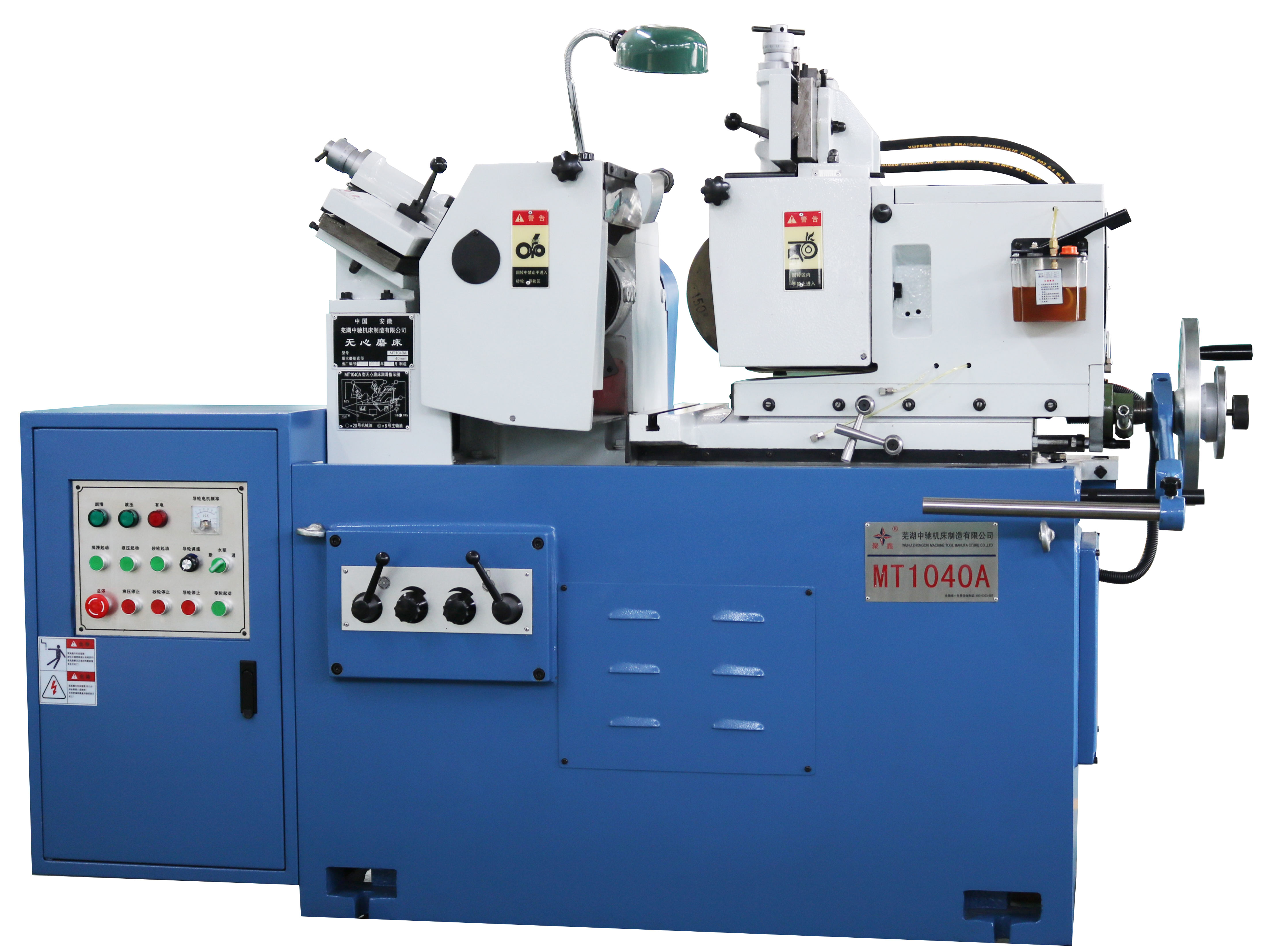 ◆ 導輪結構在原由單臂懸掛改為三點支撐,導輪軸加長,前支撐采用可調節合金軸瓦支撐導輪軸,在重切削時不失中心,提高導輪整體鋼性,磨削工件尺寸穩定、精度高。